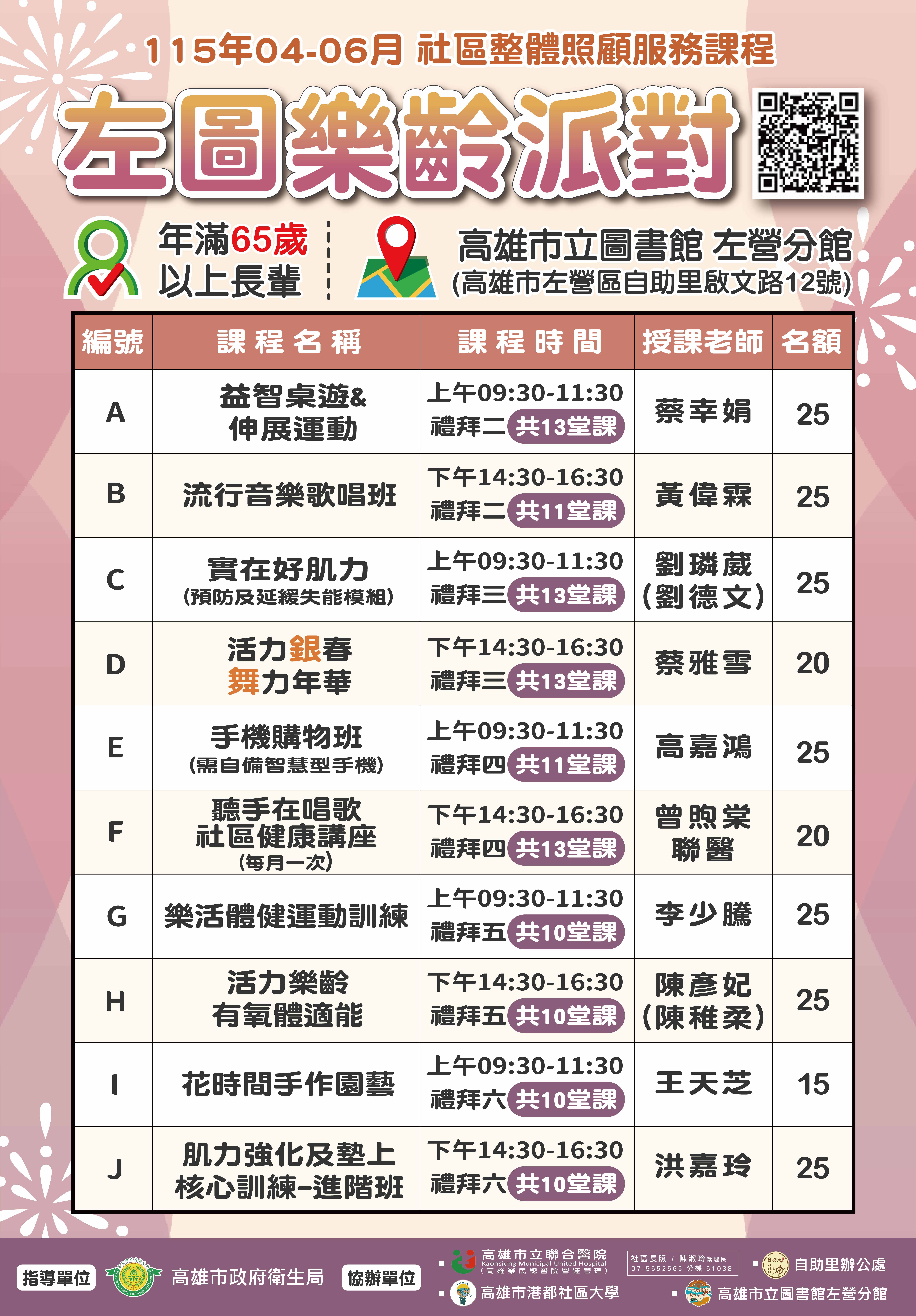 5.左圖樂齡派對高雄市立圖書館左營分館 (高雄市左營區自助里啟文路12號)
