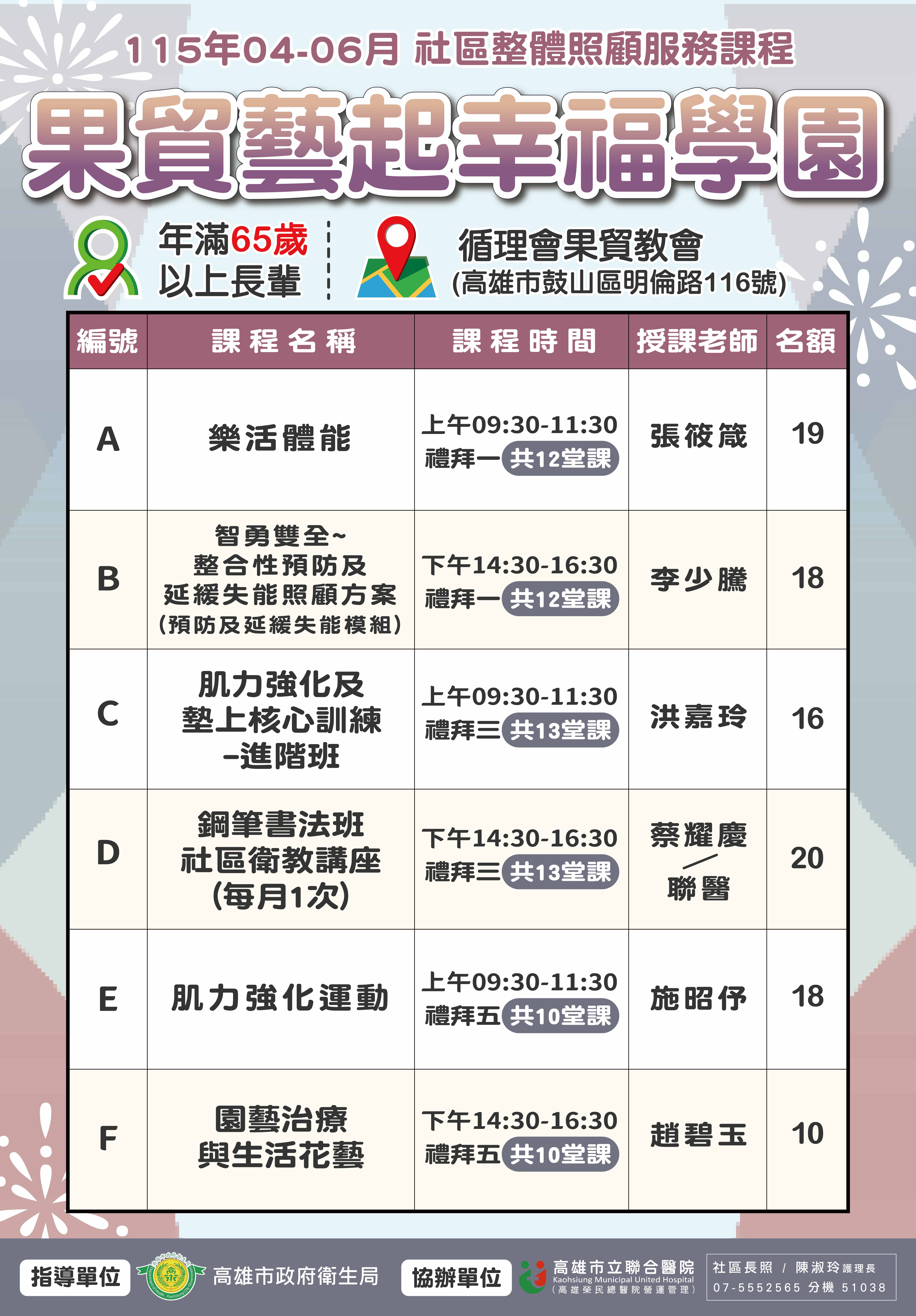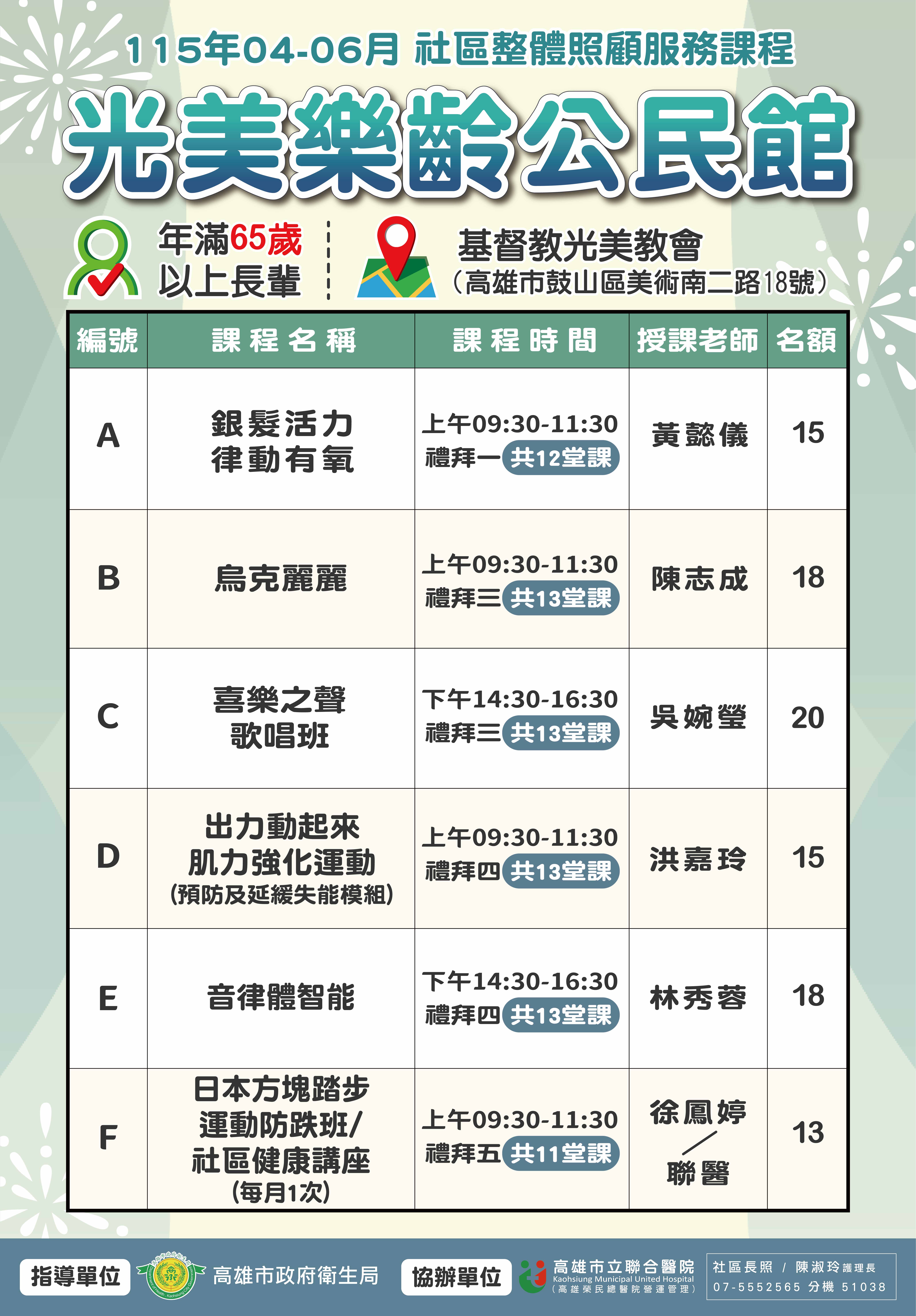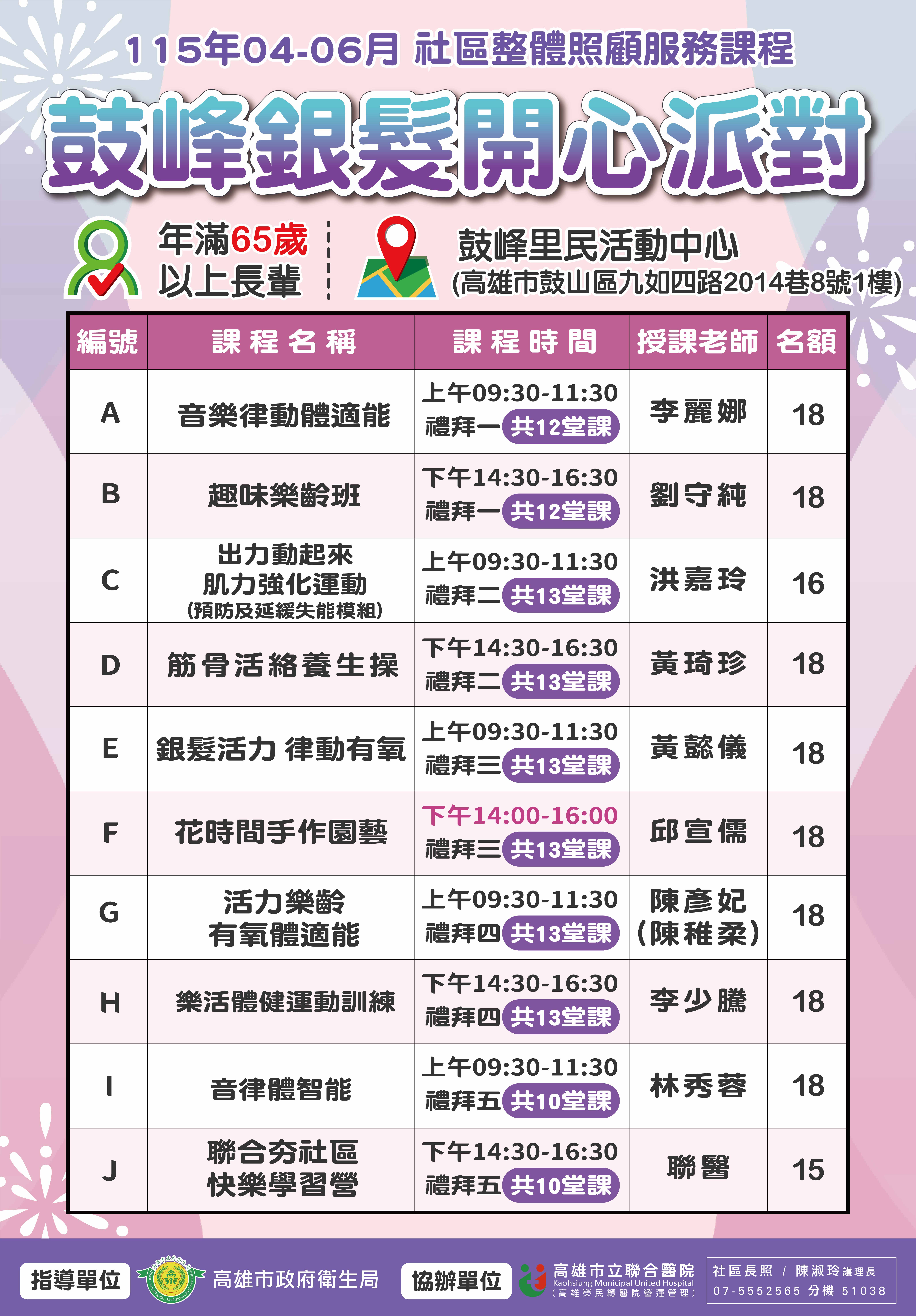 4.鼓峰活動中心銀髮開心派對 (高雄市鼓山區九如四路2000巷1號)
