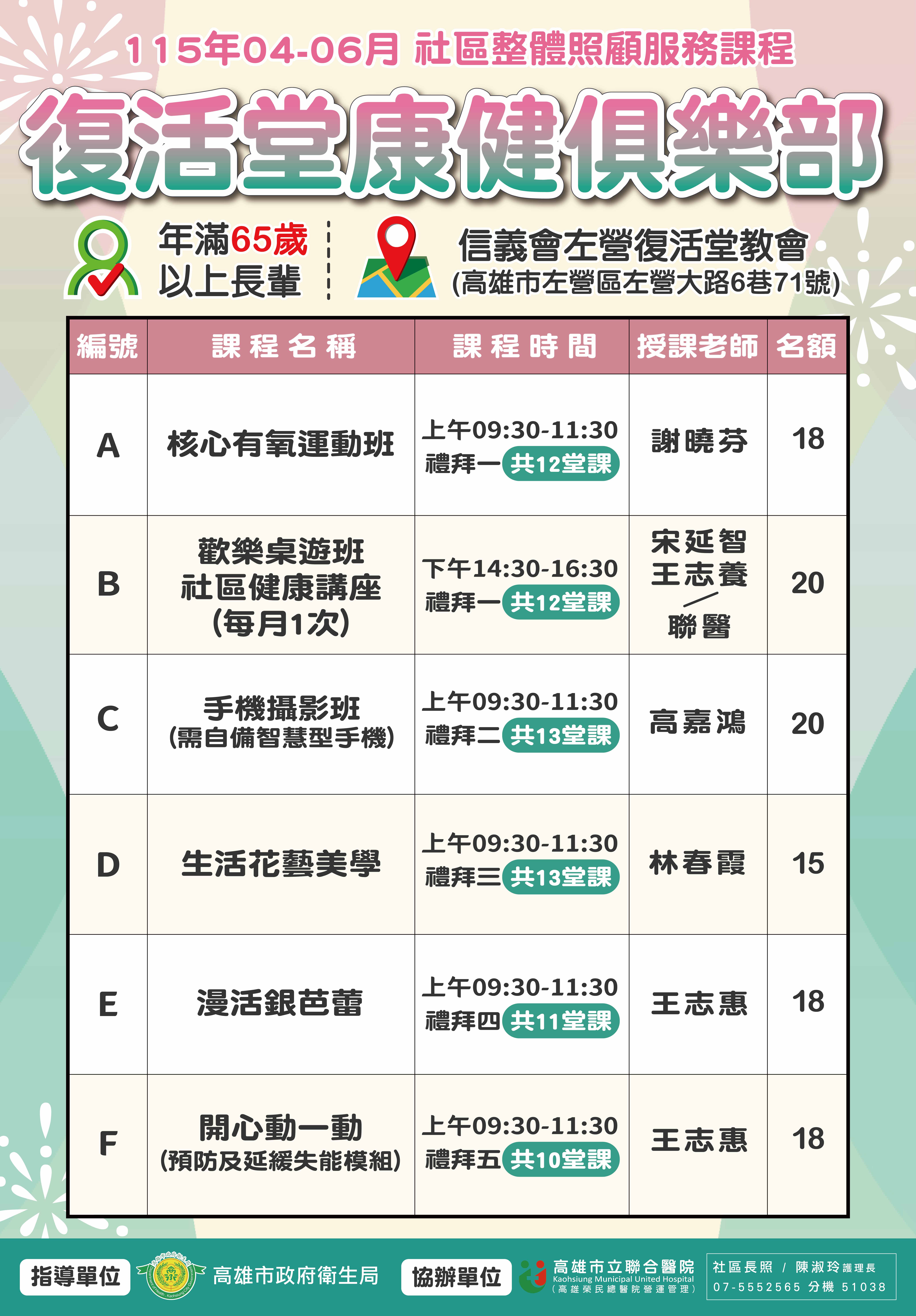 3.復活堂教會康健俱樂部 (高雄市左營區左營大路6巷71號)